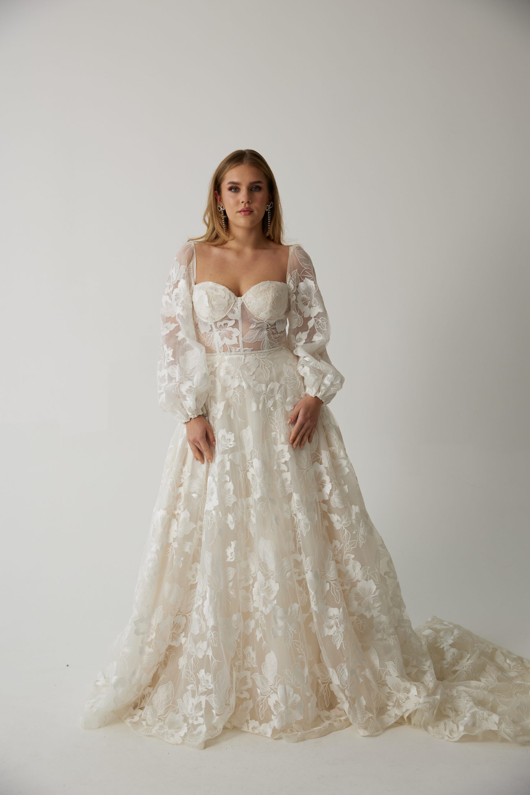 A-Linie aus Spitze mit Ballonärmeln