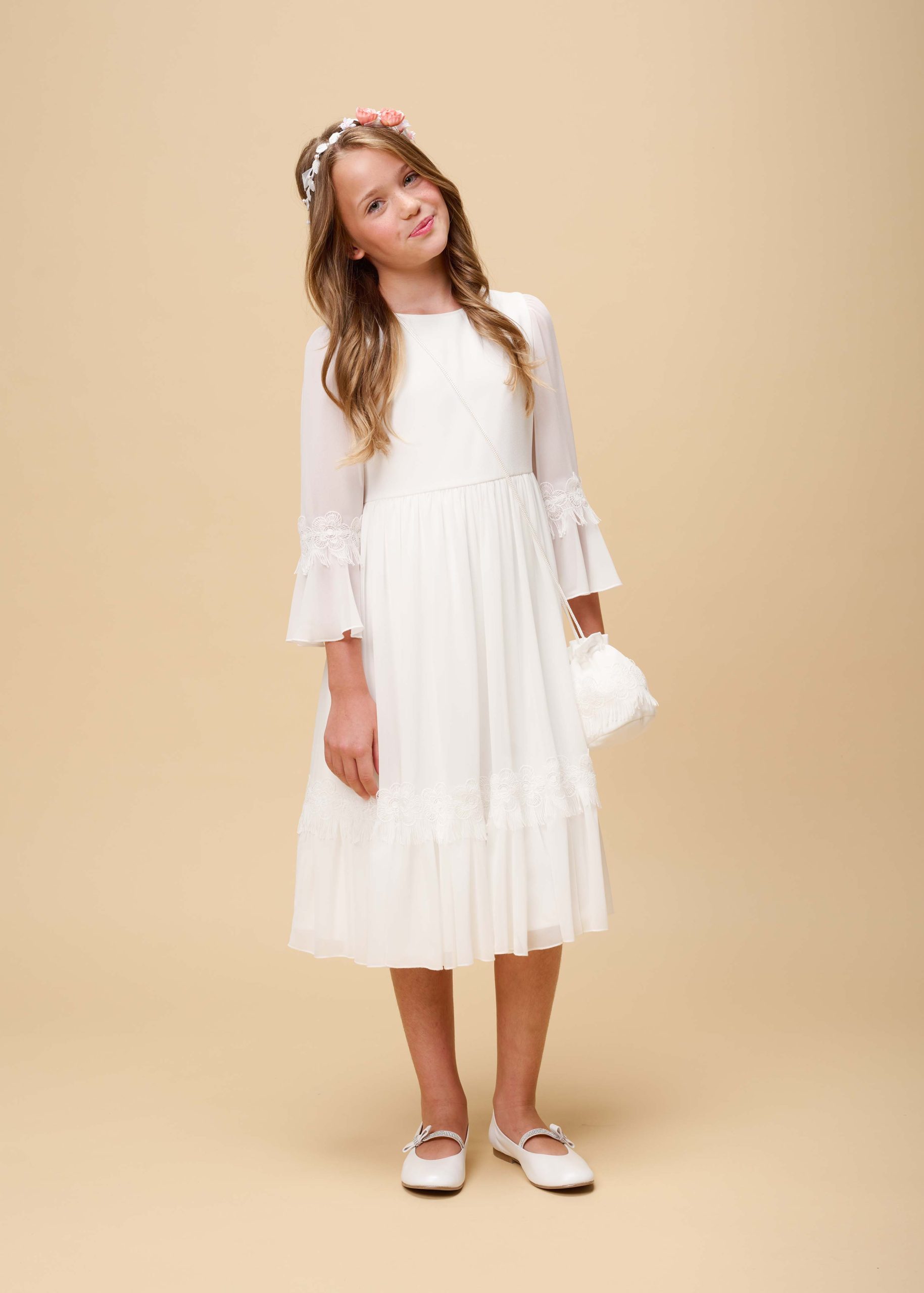 Chiffonkleid in 3/4 Länge und stufenlagigem Rock