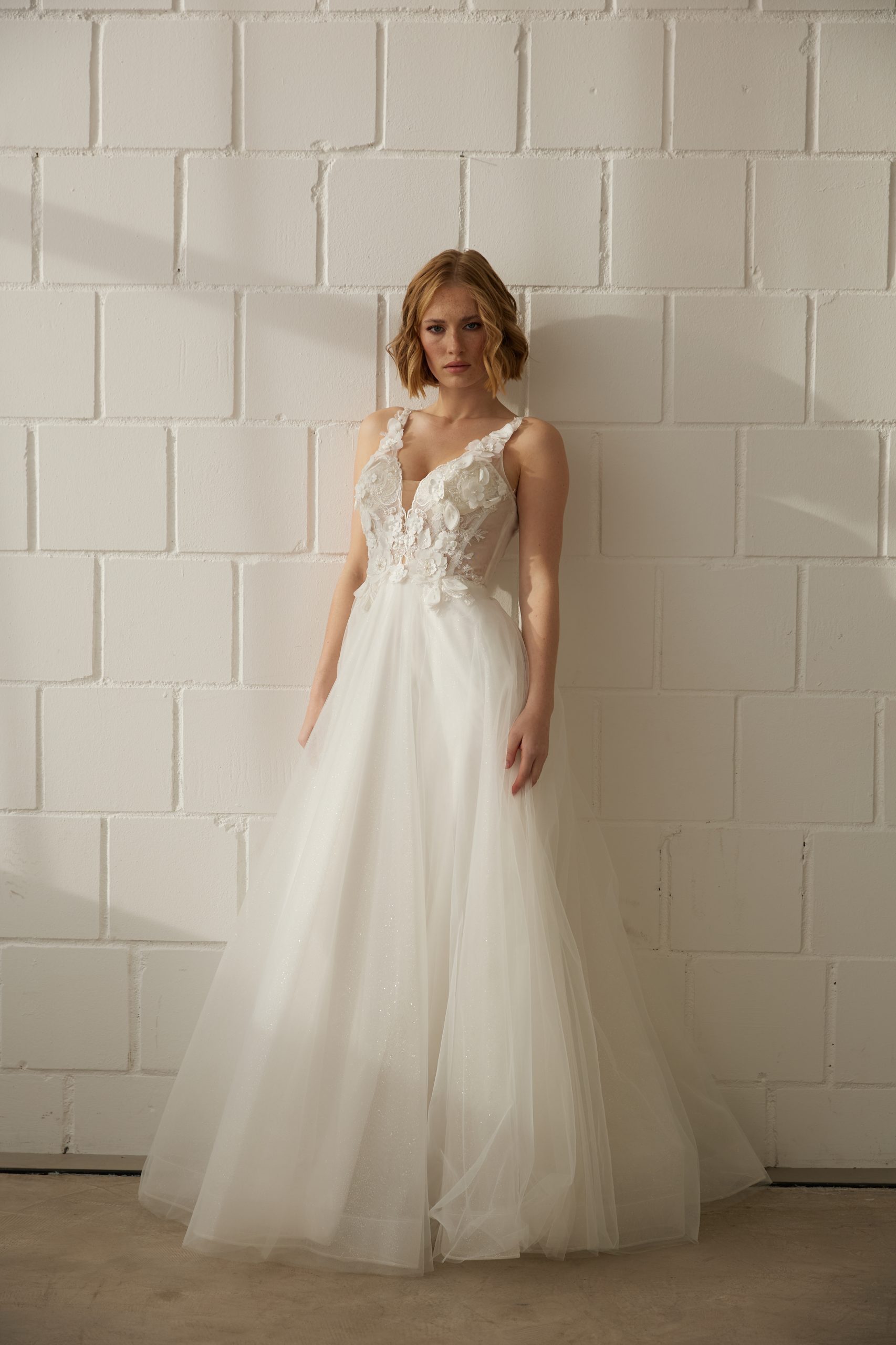 A-Linie aus Glitzertüll mit Spitzenoberteil