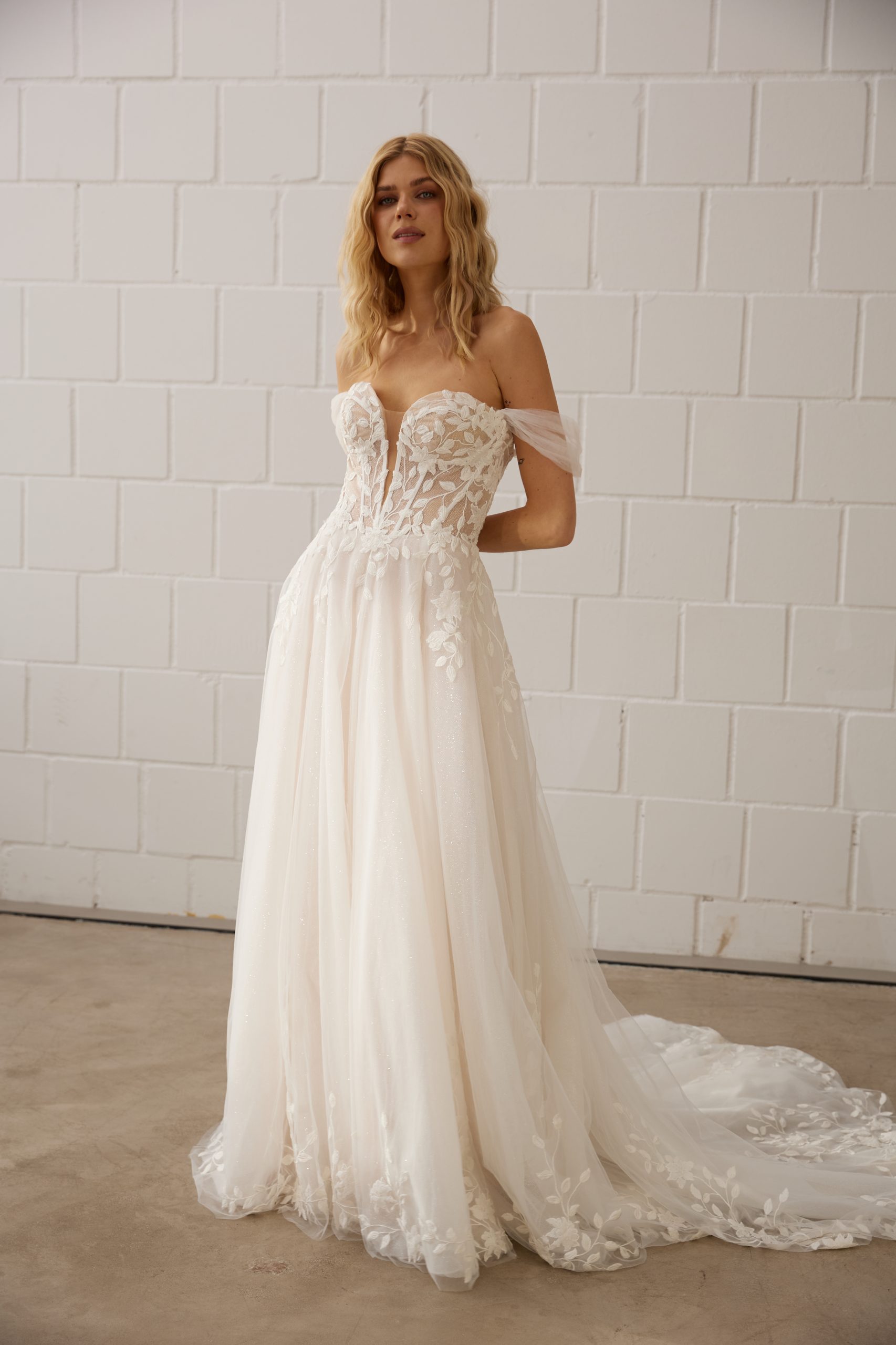 A-Linie aus Glitzertüll mit floraler Spitze