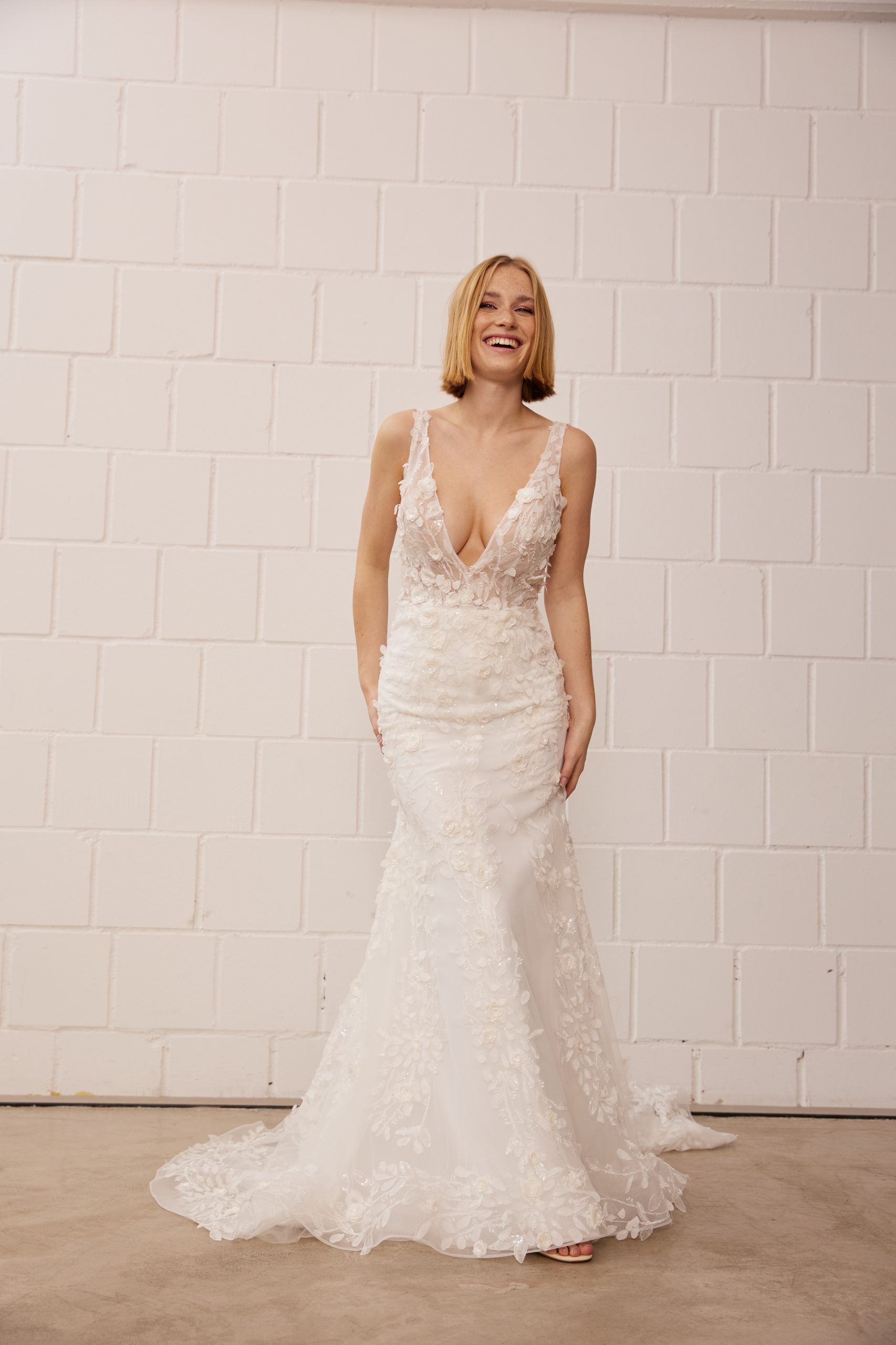 Fit and Flare Kleid aus Crepe mit abnehmbaren Puffärmeln
