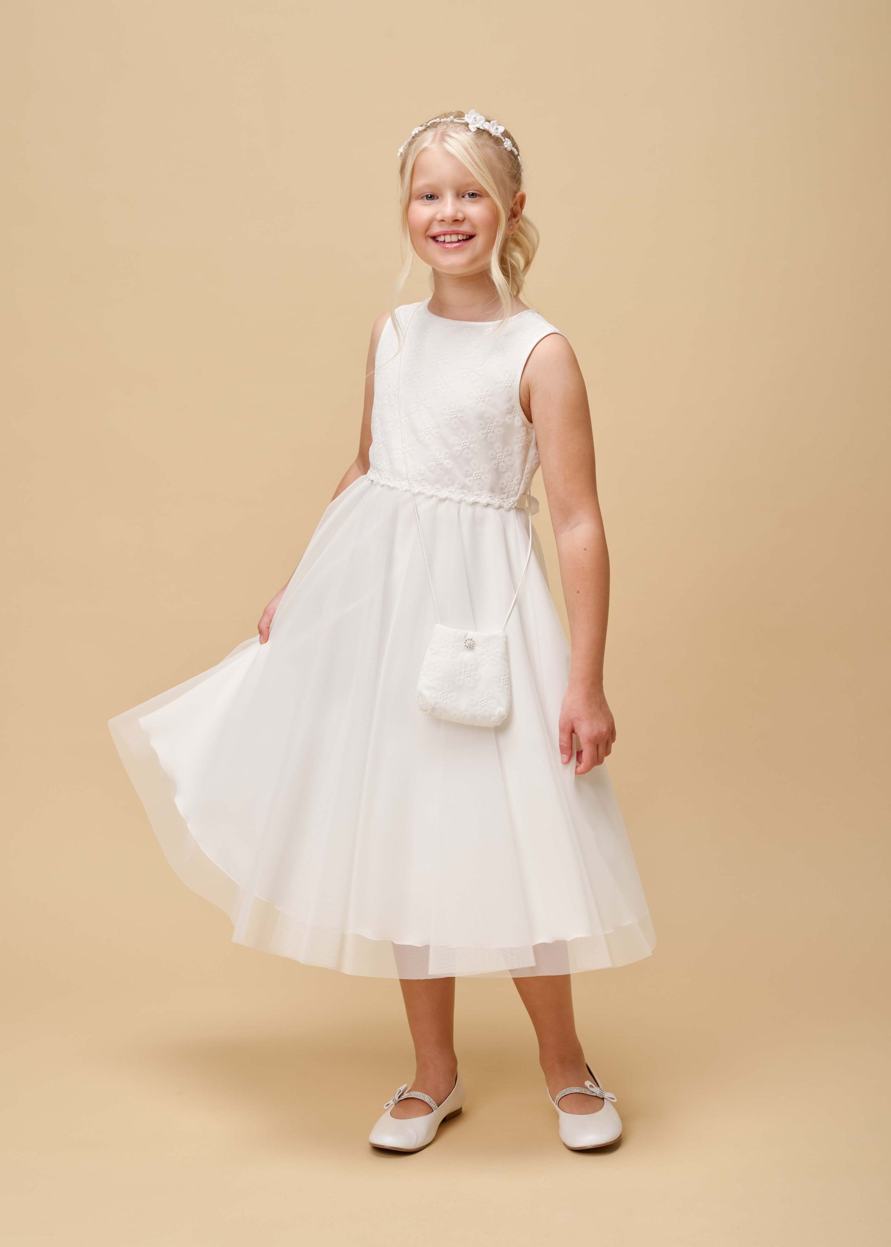 Langes Softtüllkleid mit besticktem Spitzenoberteil