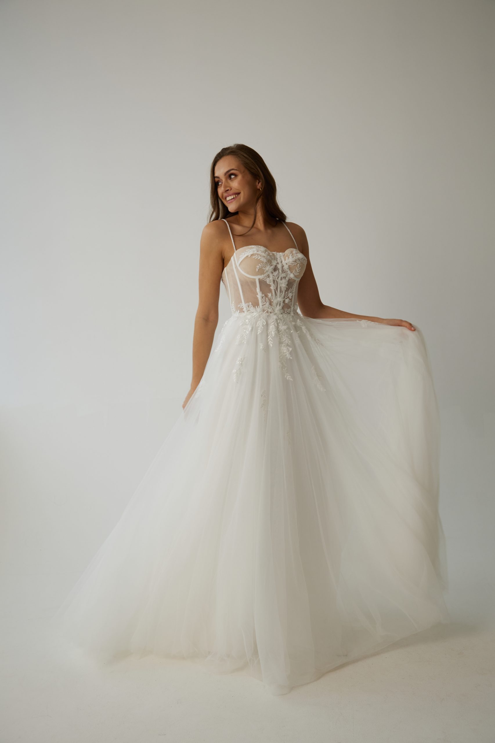 Off-Shoulder Kleid aus Crepe mit Schlitz