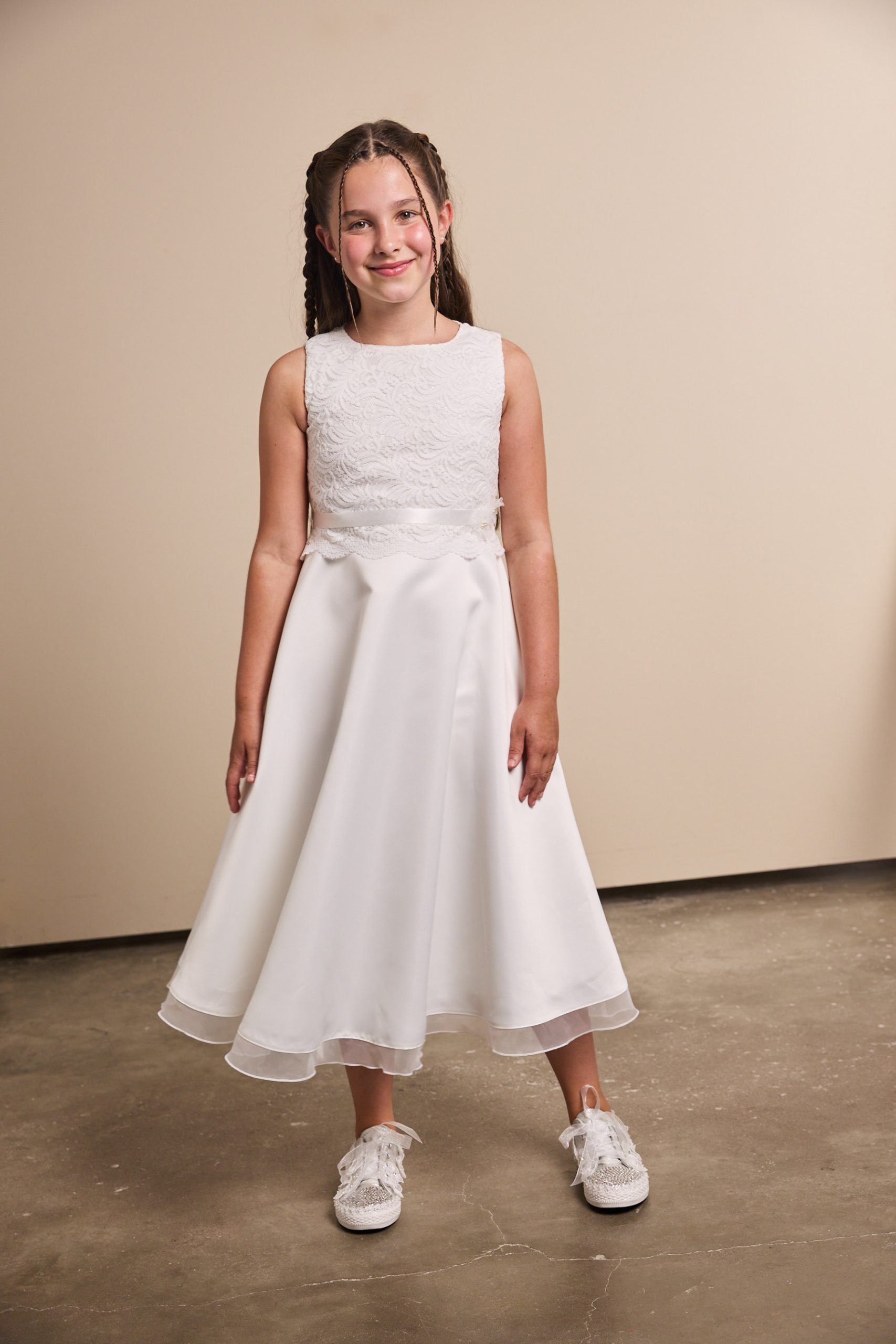 Chiffonkleid in 3/4 Länge mit Spitzenoberteil