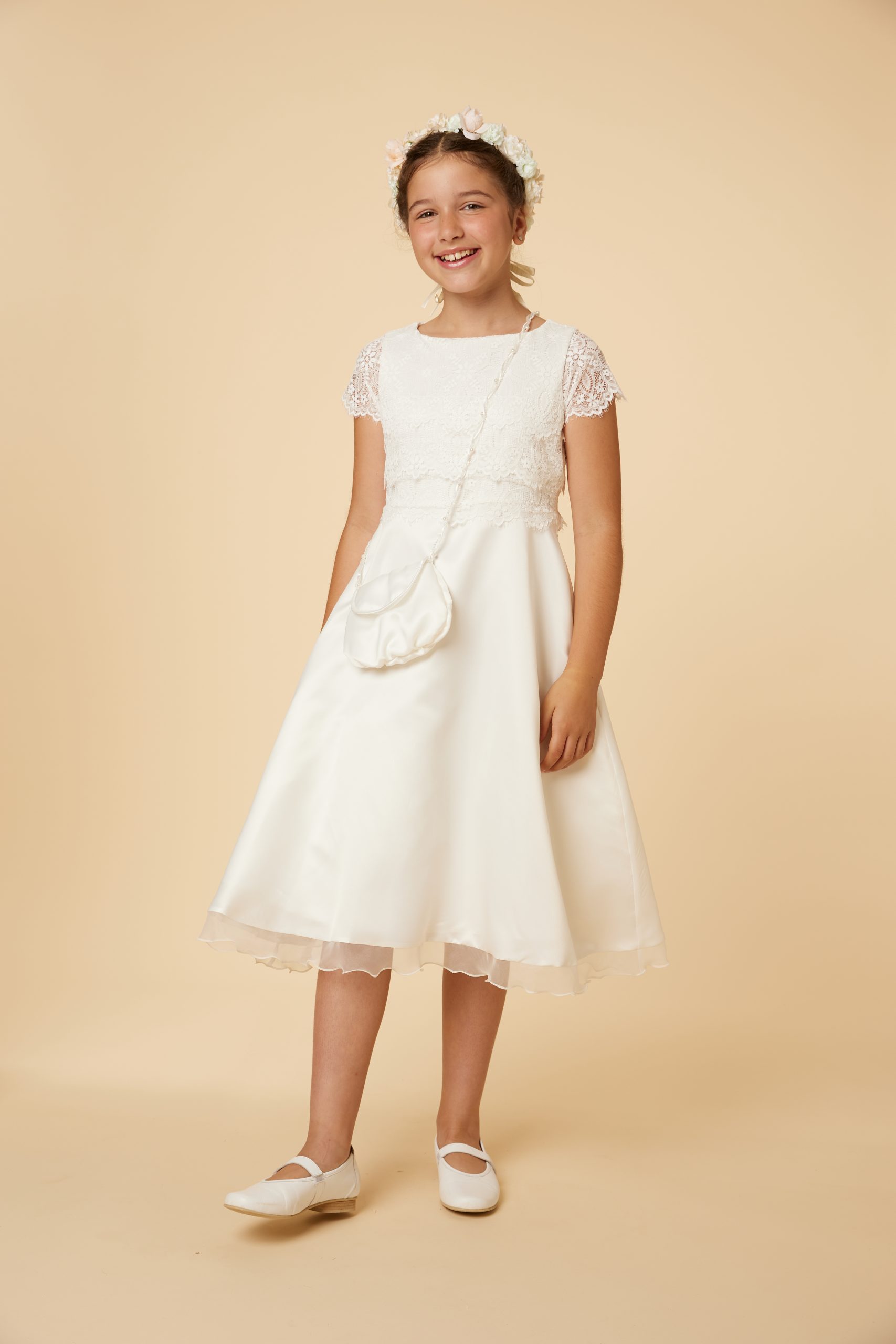 Satinkleid in 3/4 Länge mit stufenlagigem Spitzenoberteil