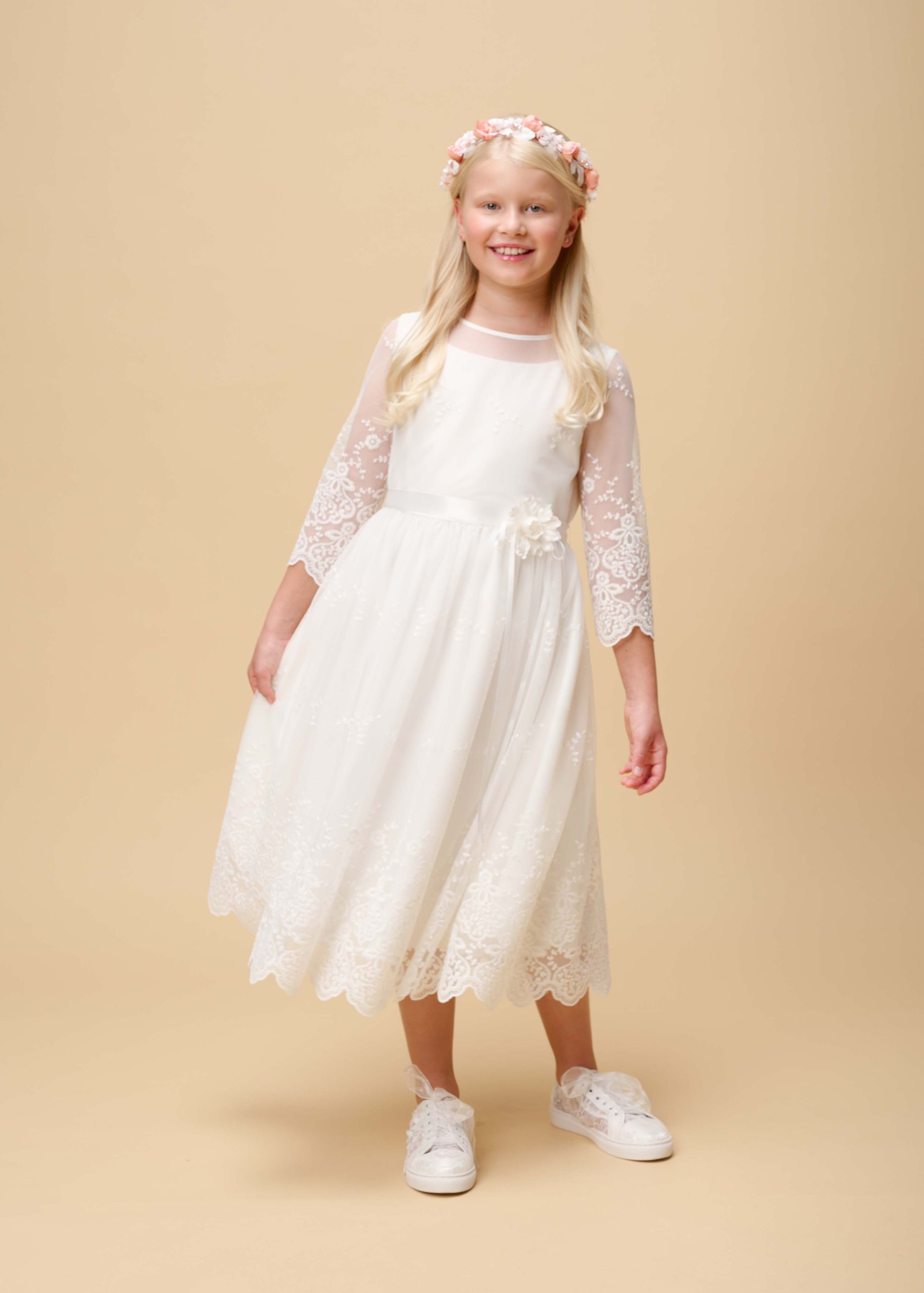 Softtüllkleid in 3/4 Länge mit aufwendiger Stickerei