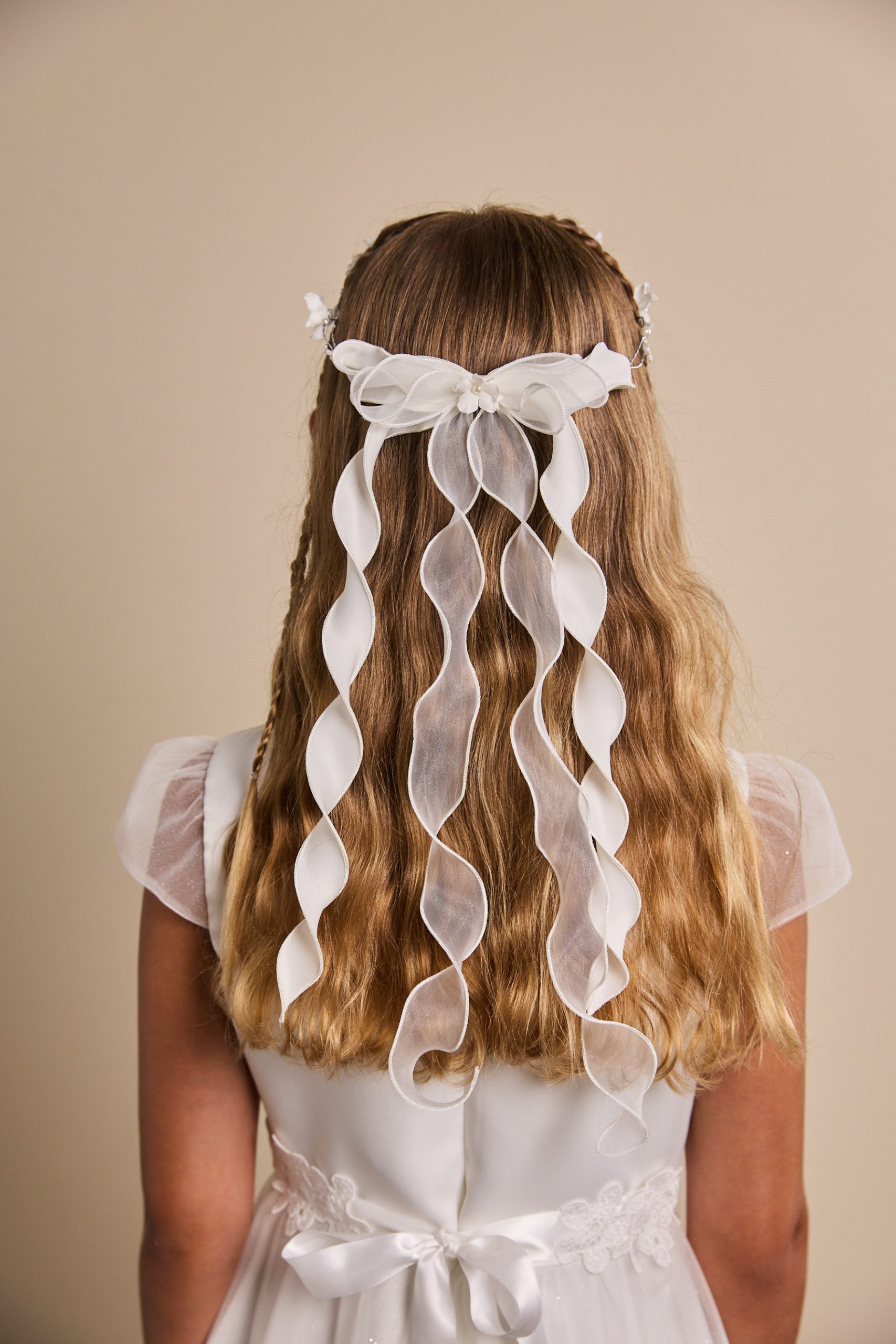 Stirnspitze mit Blüten, Organza/Satin
