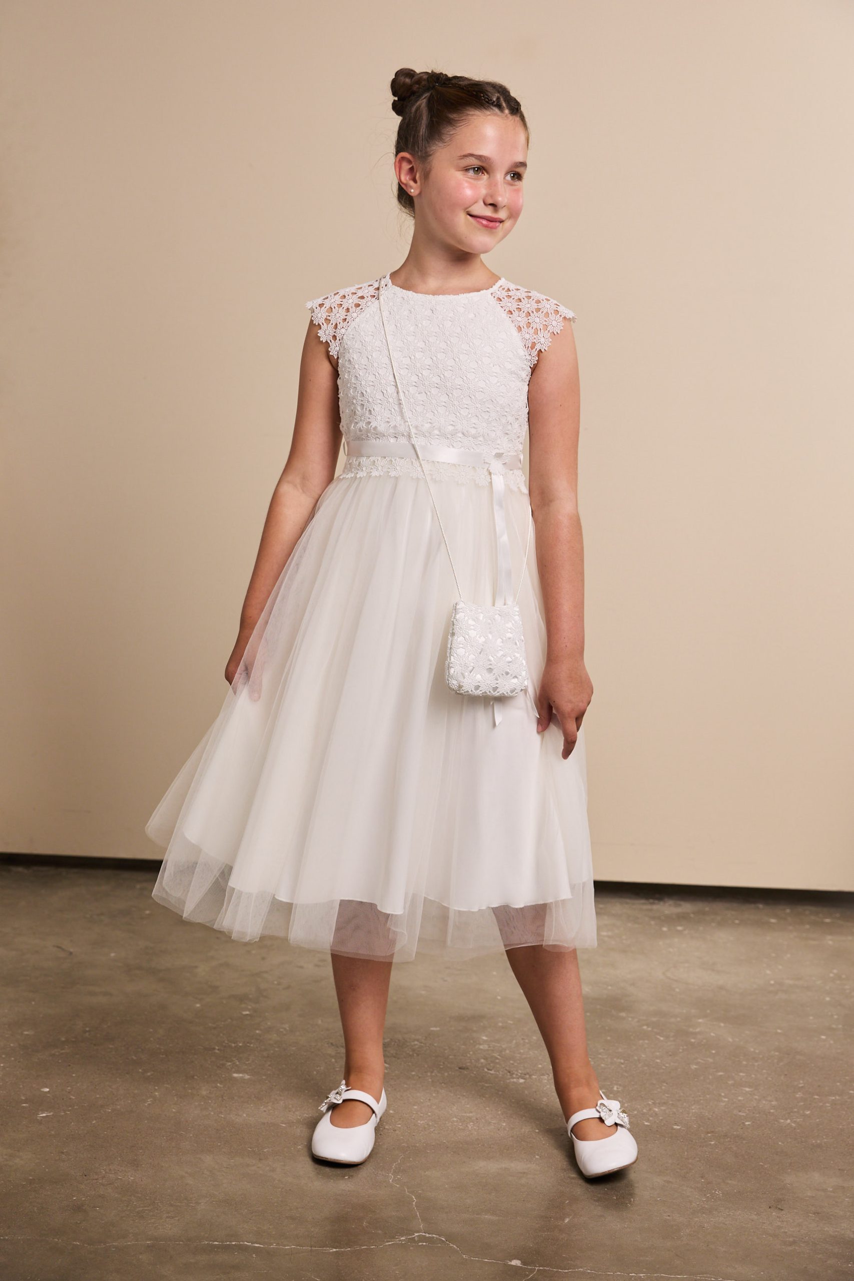 Glitzertüllkleid in 7/8 Länge mit Spitzenoberteil