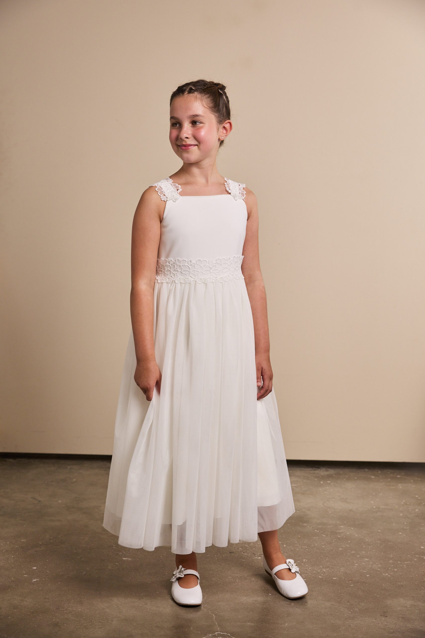 Langes Softtüllkleid mit besticktem Spitzenoberteil